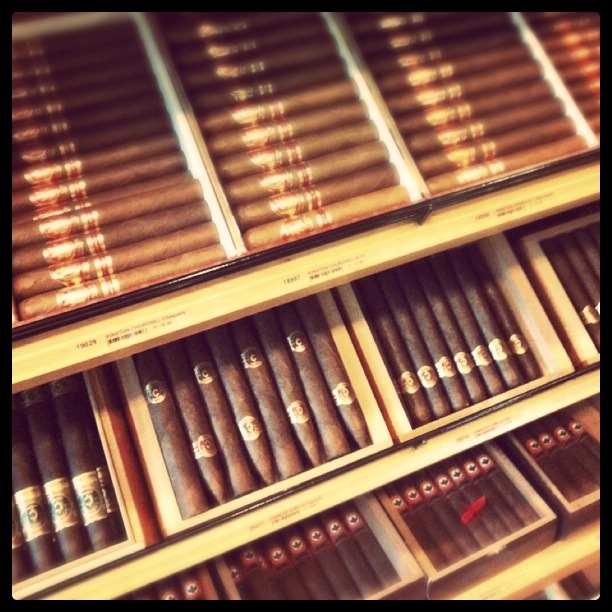 Dried and fermented tobacco leaves hung from the celing of the back room and cigars lined the shelves in all sorts of lengths, thicknesses, boxes and tins.